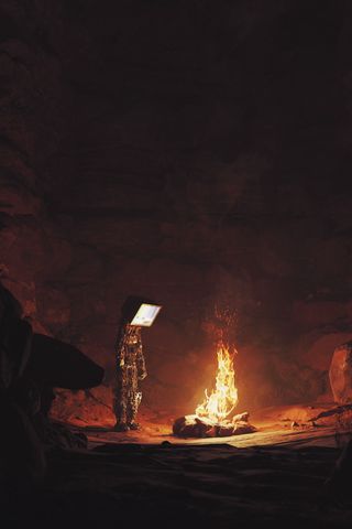 320x480 андроид, экран, костер, огонь, пещера, темный обои samsung galaxy ace gt-s5830, sony xperia e, miro, htc wildfire s, c, lg optimus