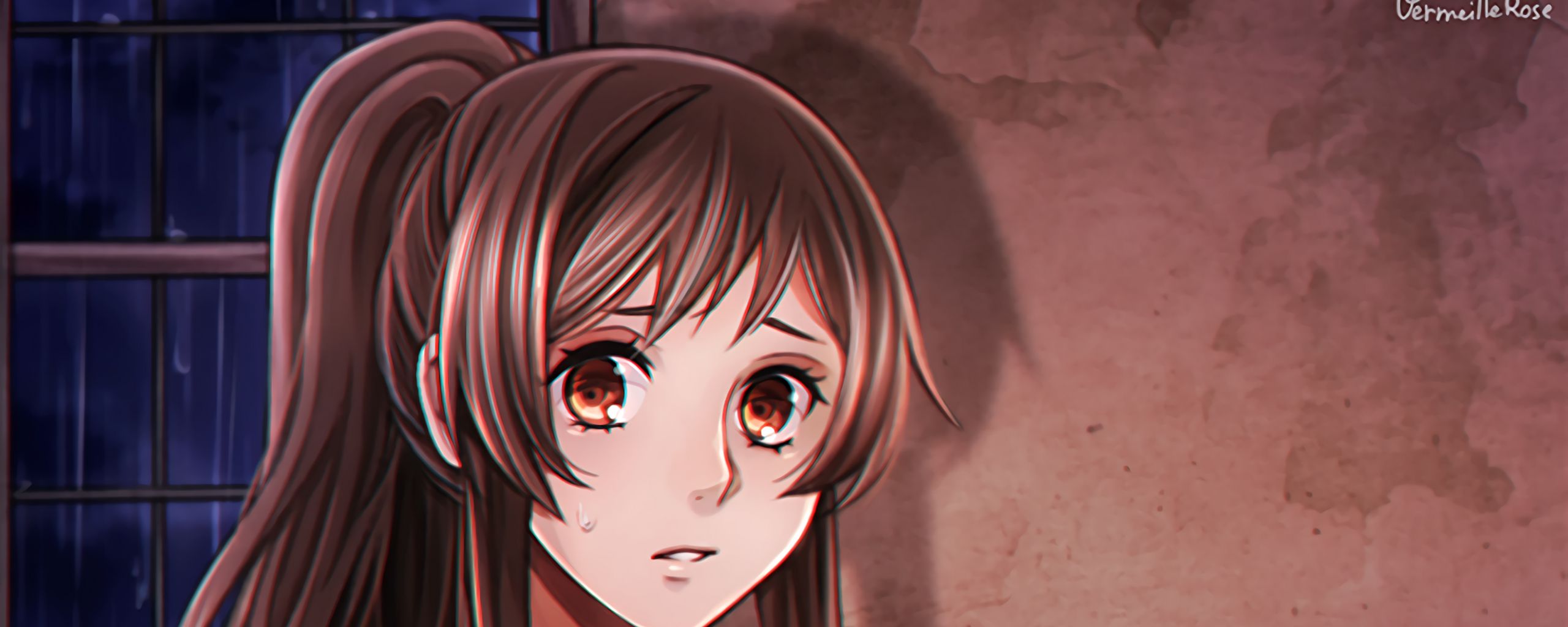 2560x1024 аниме, девушка, грусть, эмоции, арт обои ультраширокий монитор