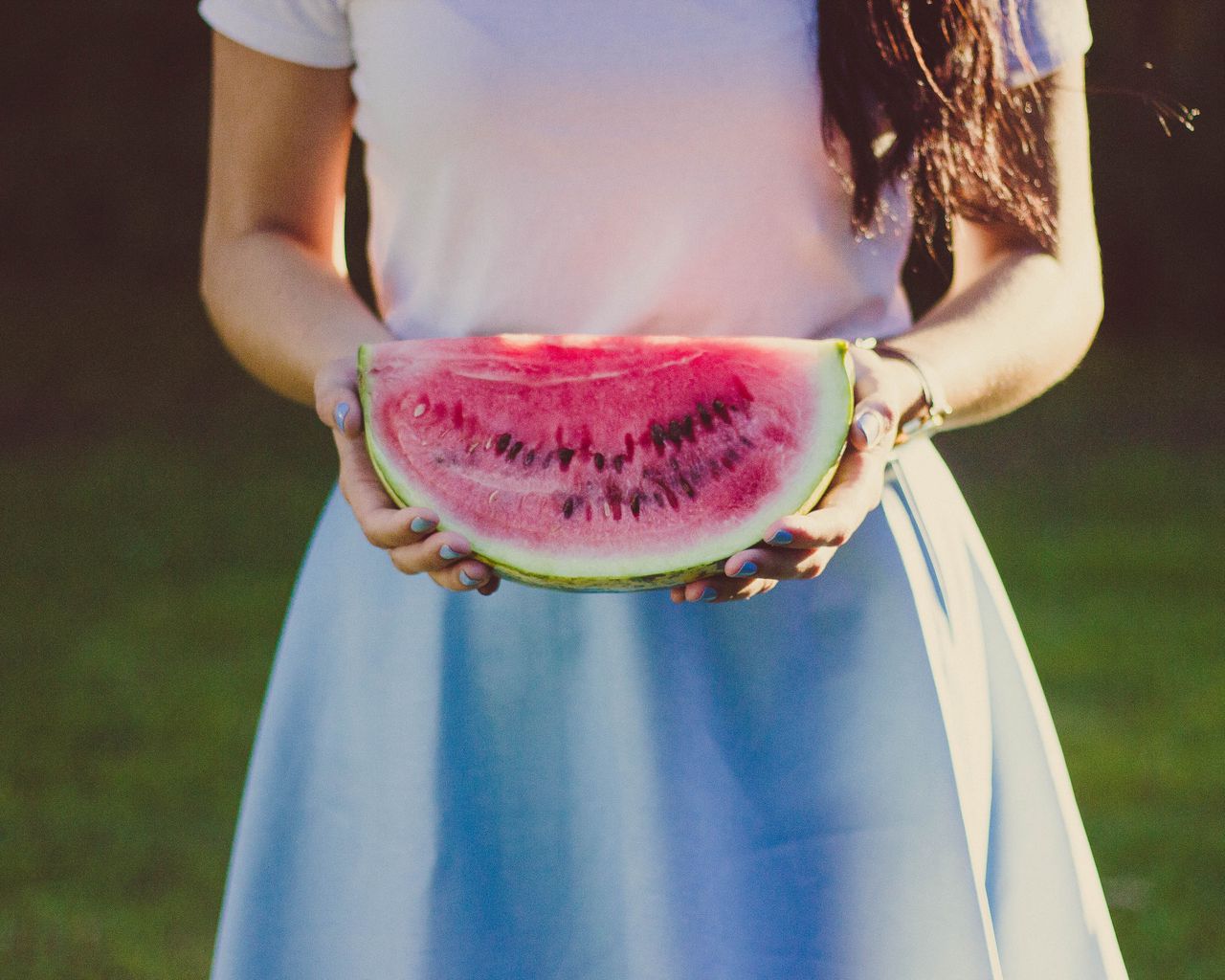 1280x1024 арбуз, девушка, руки, платье обои стандарт 5:4
