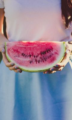 240x400 арбуз, девушка, руки, платье обои nokia asha 311, samsung galaxy 580, omnia, lg kp500