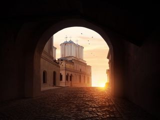 320x240 арка, храм, солнце, свет, темный обои nokia e72, e71, asha, alcatel onetouch