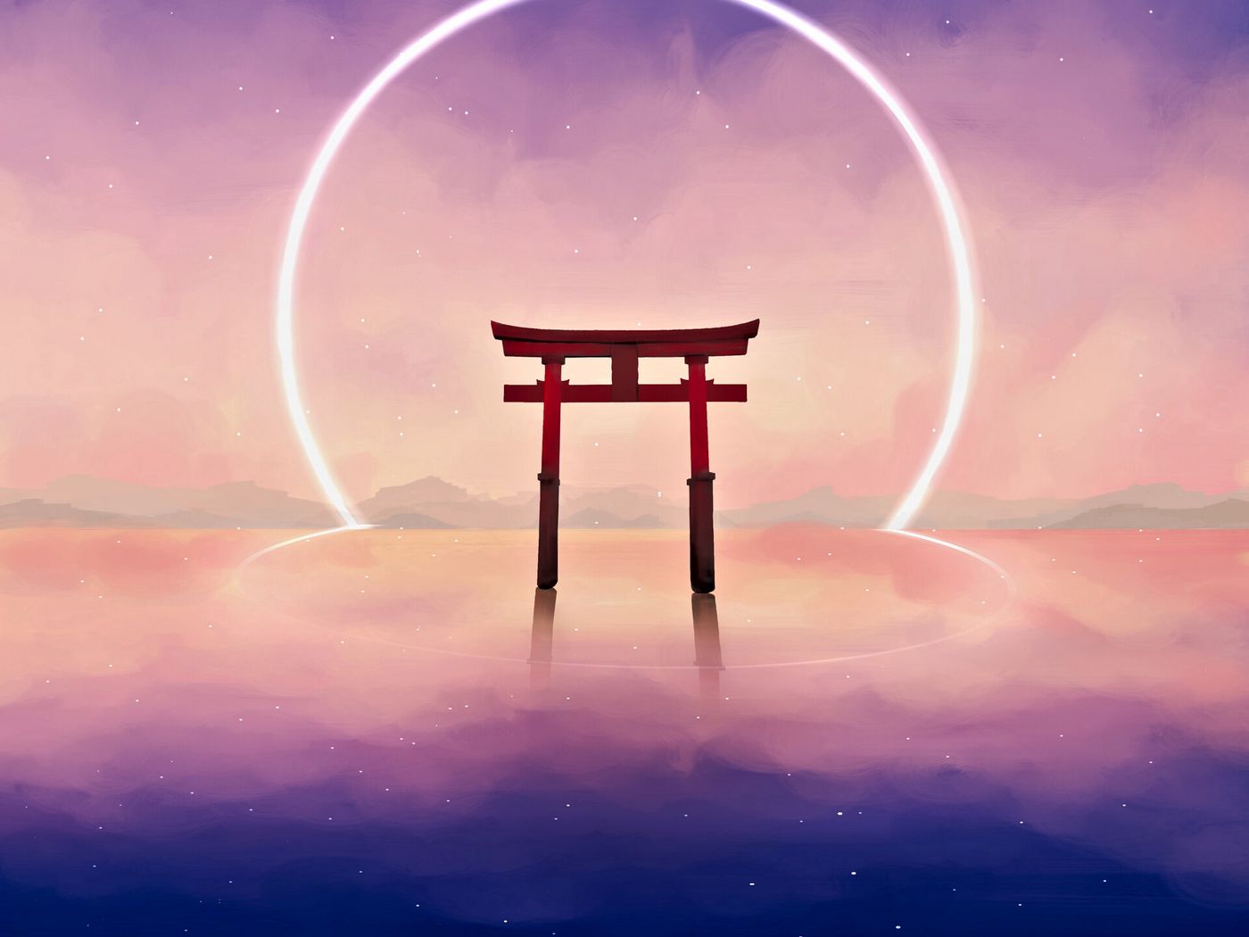 1400x1050 арка, синто, кольцо, свет, арт обои стандарт 4:3