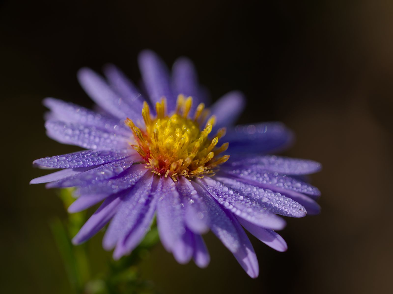 1600x1200 астра, цветок, лепестки, капли, макро, пыльца обои стандарт 4:3