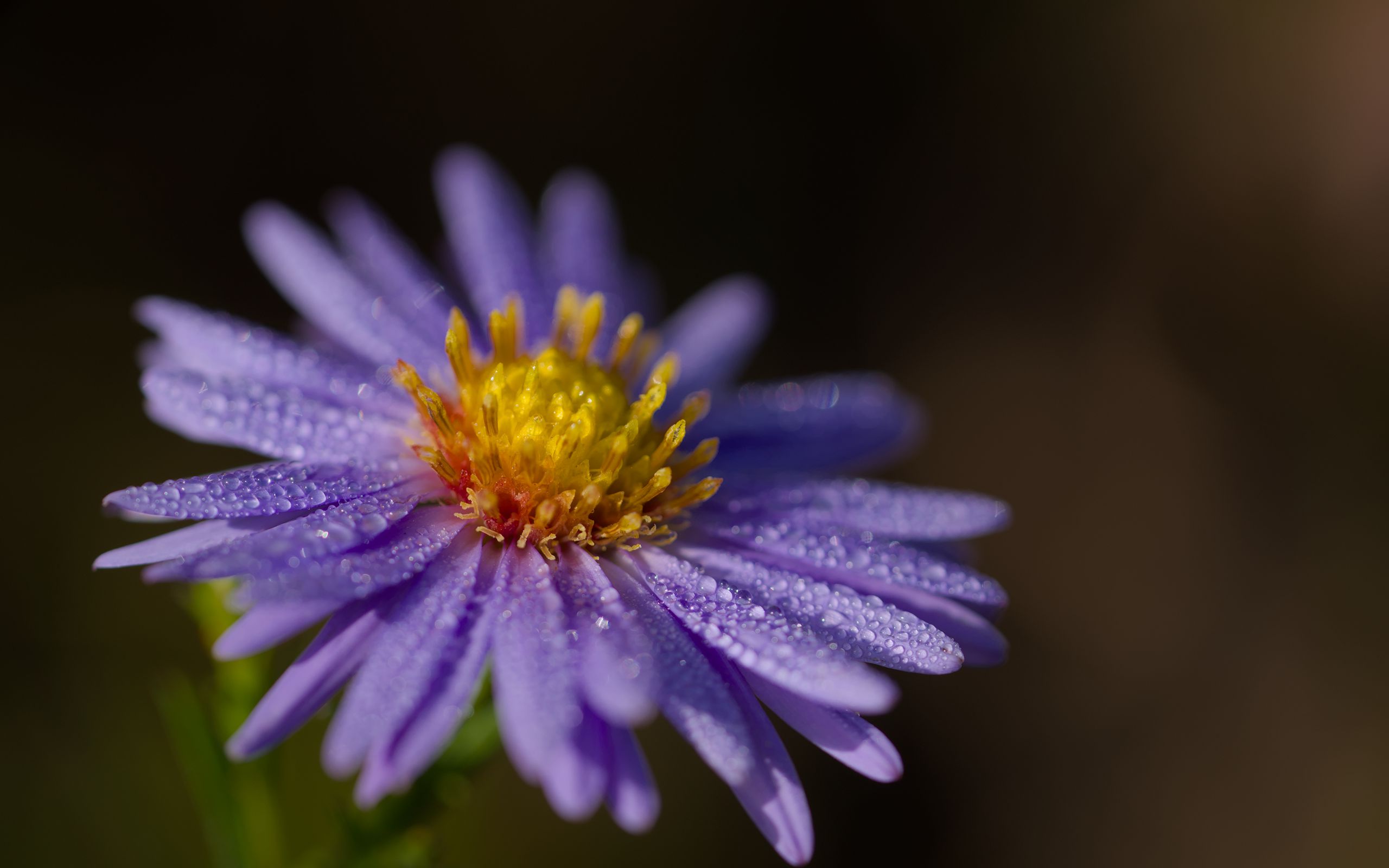2560x1600 астра, цветок, лепестки, капли, макро, пыльца обои 16:10