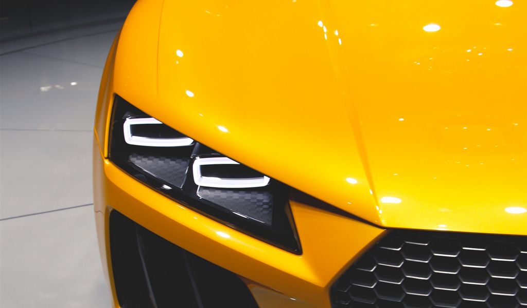 1024x600 автомобиль, спорткар, фара, желтый, вид спереди обои нетбук, планшет
