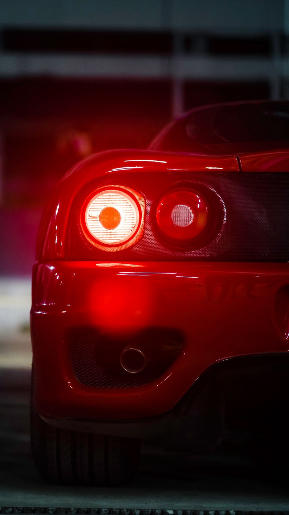 938x1668 автомобиль, спорткар, красный, фонари, свет, вид сзади обои iphone 8/7/6s/6 for parallax
