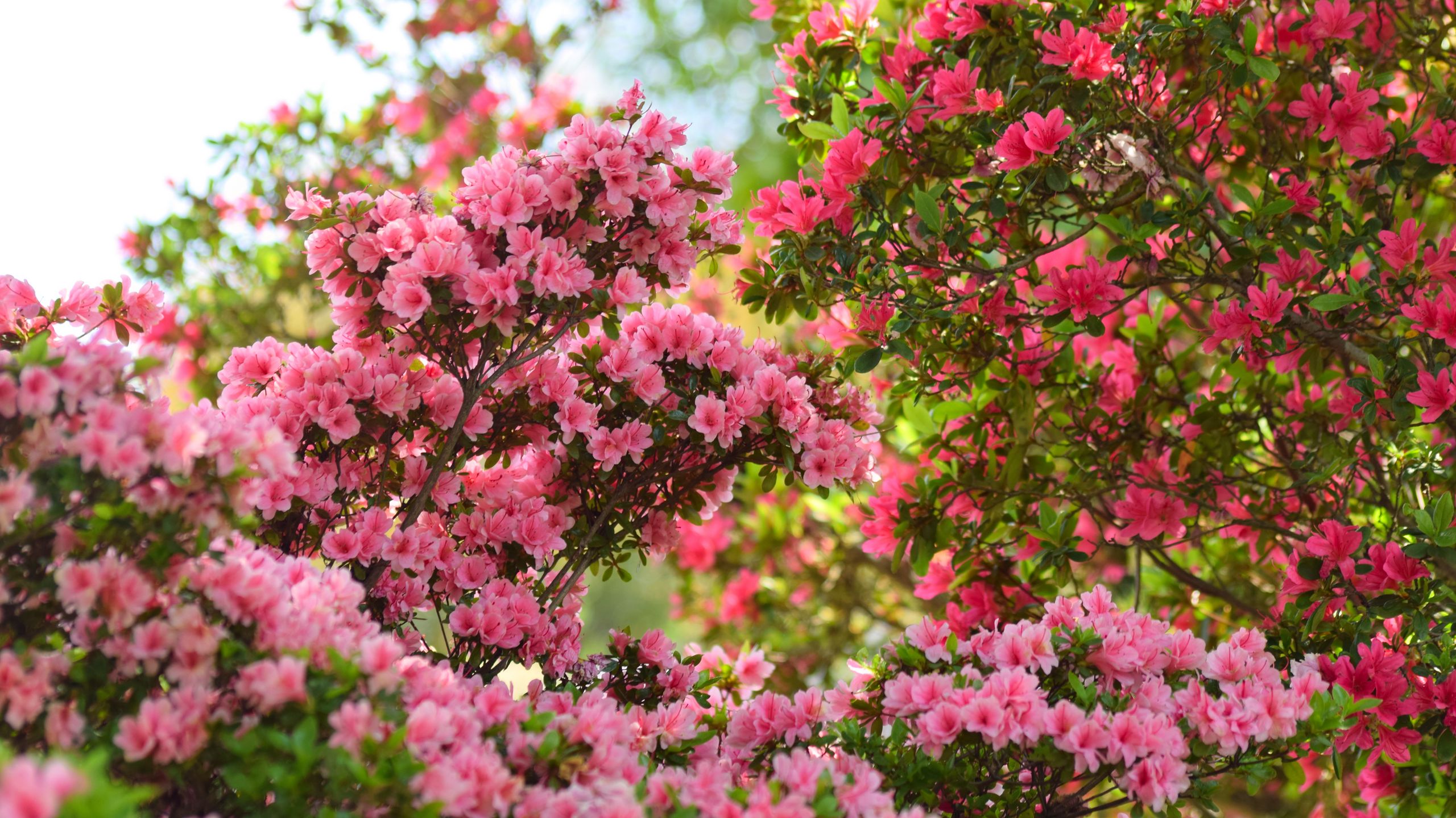 2560x1440 азалия, цветы, листья, розовый обои 16:9