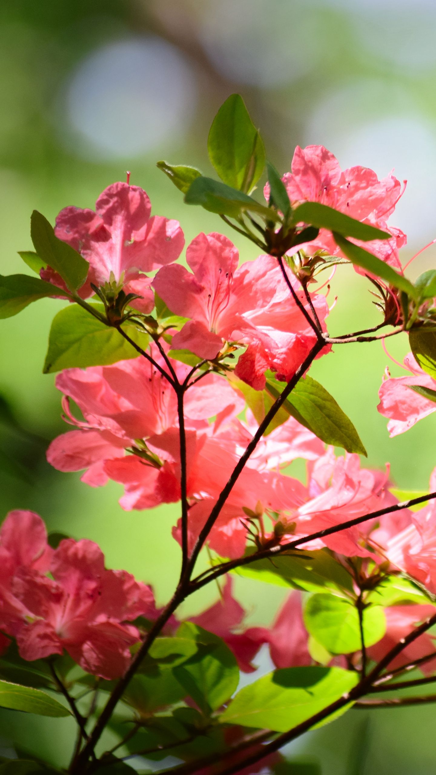 1440x2560 азалия, цветы, ветки, листья обои qhd samsung galaxy s6, s7, edge, note, lg g4
