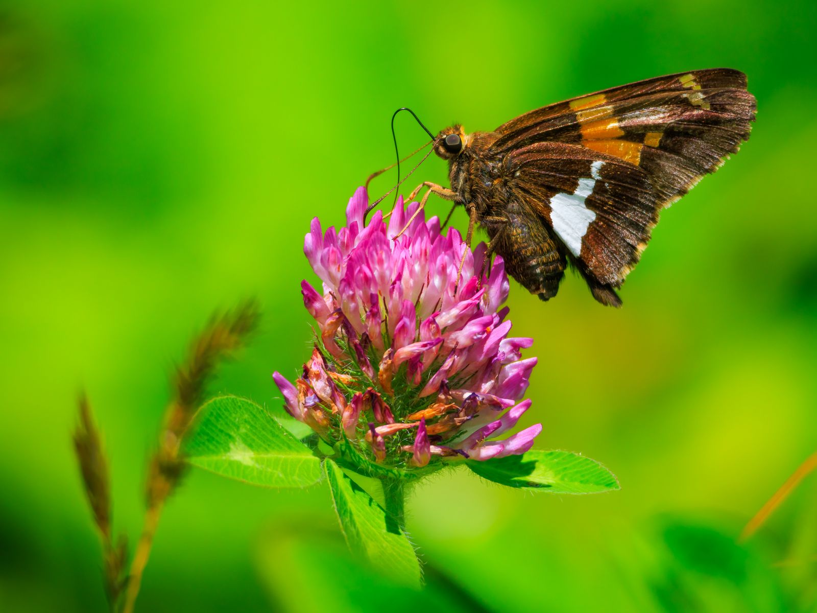 1600x1200 бабочка, клевер, цветок, растение, макро обои стандарт 4:3