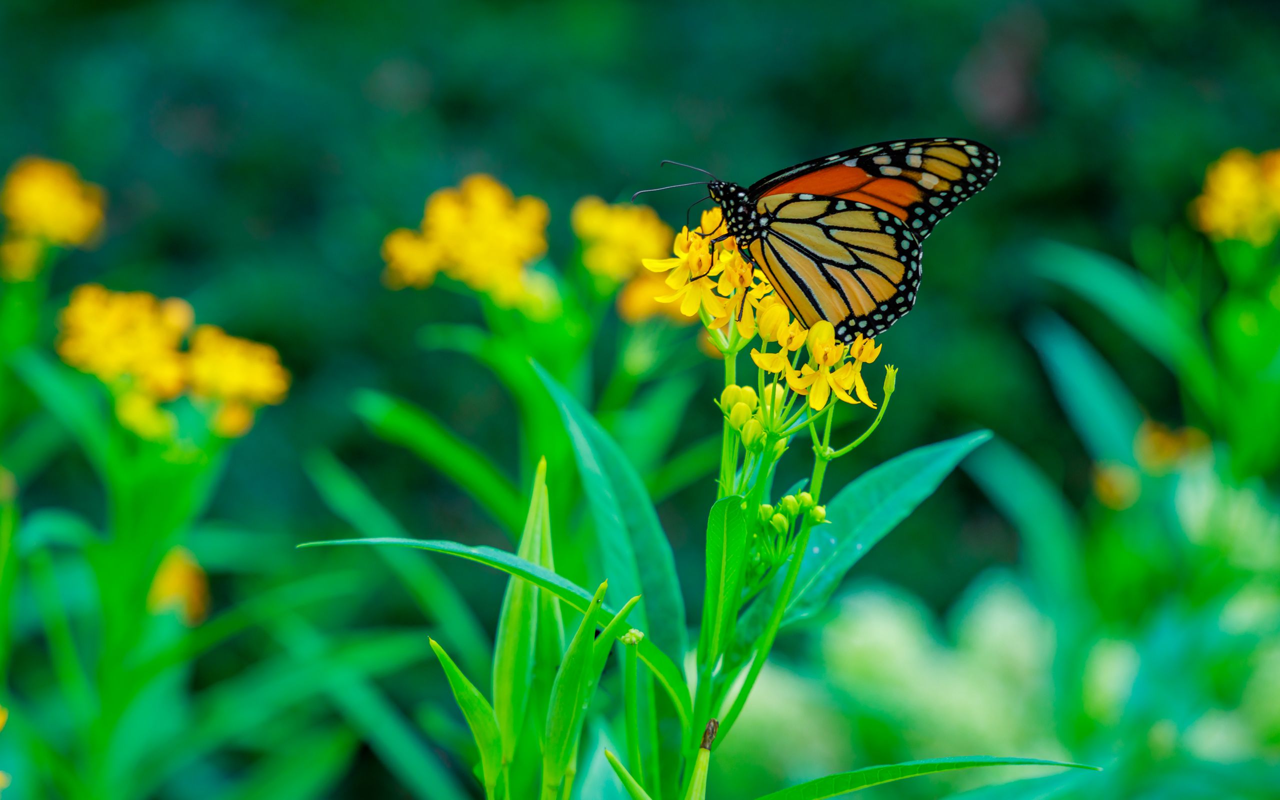 2560x1600 бабочка, цветы, растения, листья, макро обои 16:10