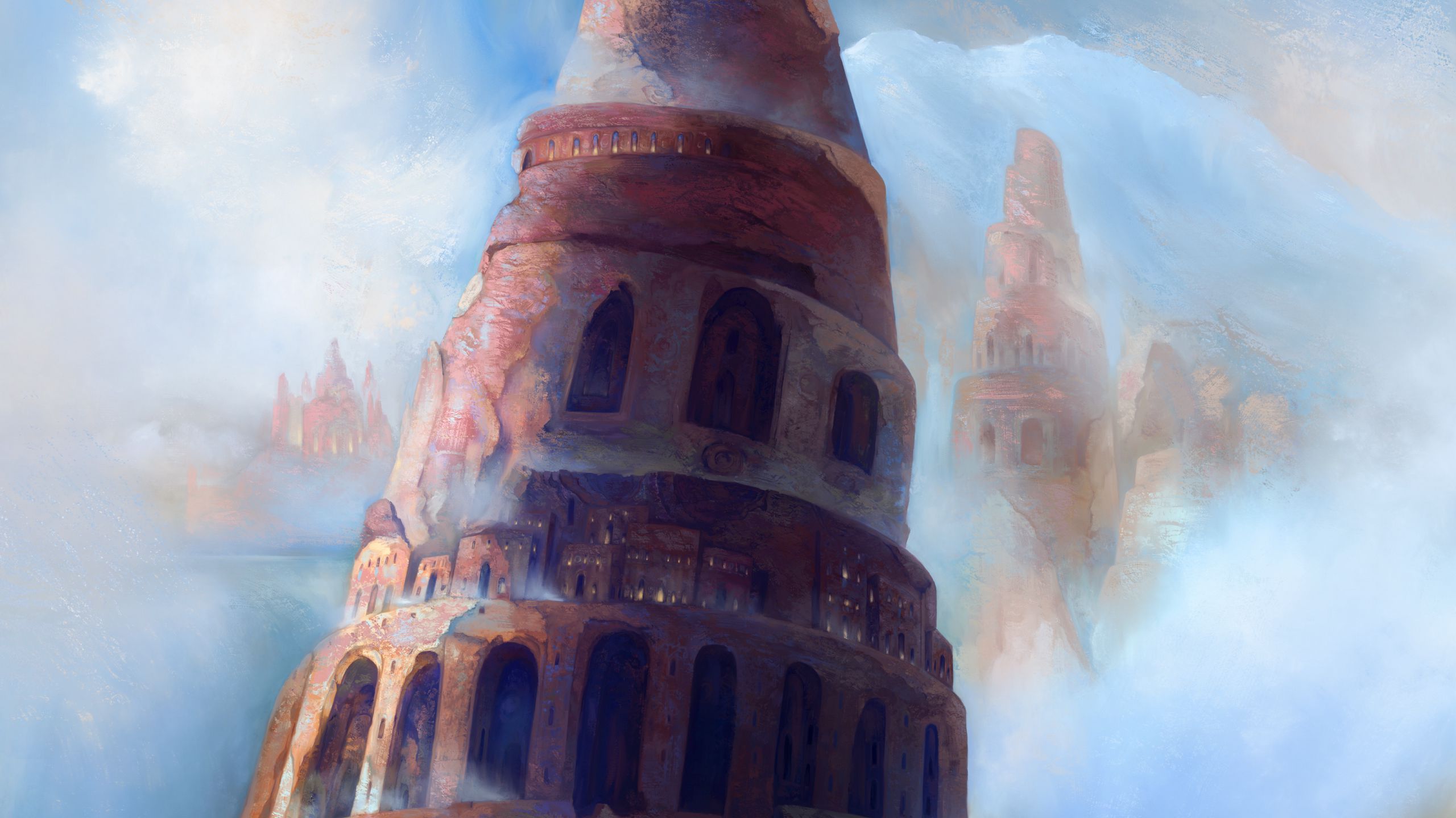 2560x1440 башни, руины, море, волны, арт обои 16:9