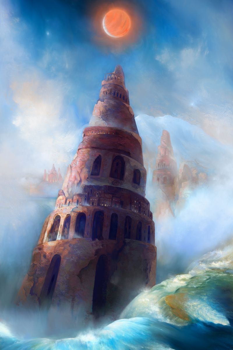 800x1200 башни, руины, море, волны, арт обои iphone 4s/4 for parallax