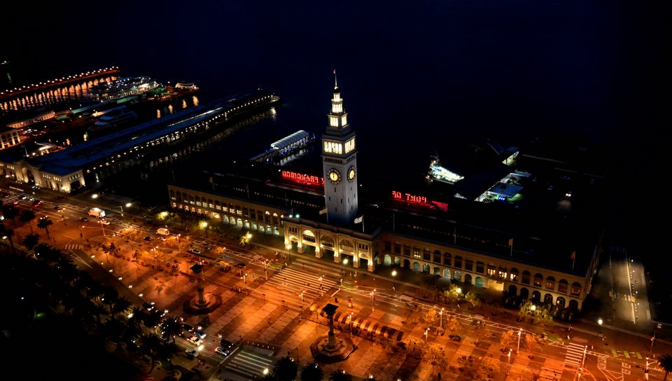 960x544 башня, часы, площадь, улица, огни, пристань, темный обои playstation ps vita