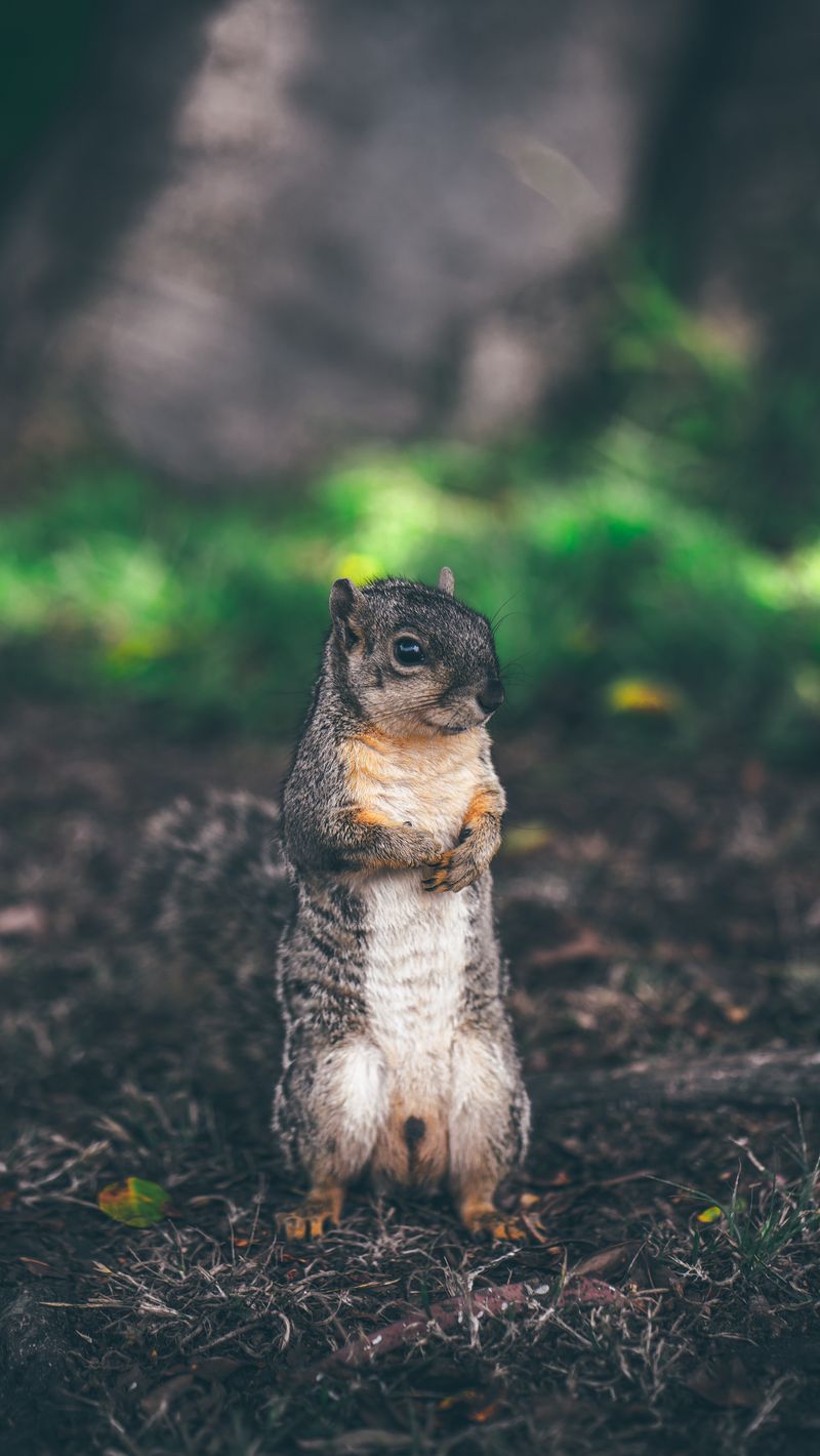 800x1420 белка, стоит, трава, зверек, размытость обои iphone se/5s/5c/5 for parallax
