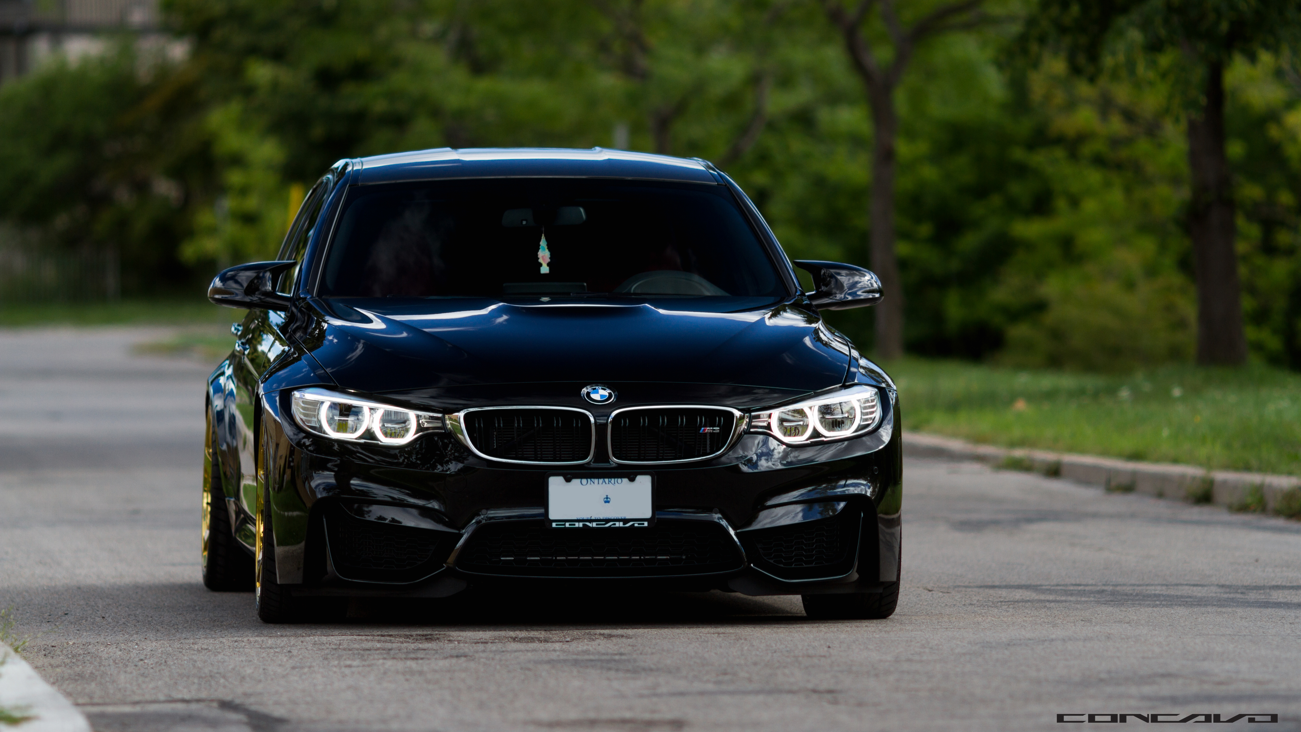4995x2810 bmw m4, bmw, автомобиль, черный, вид спереди, темный обои