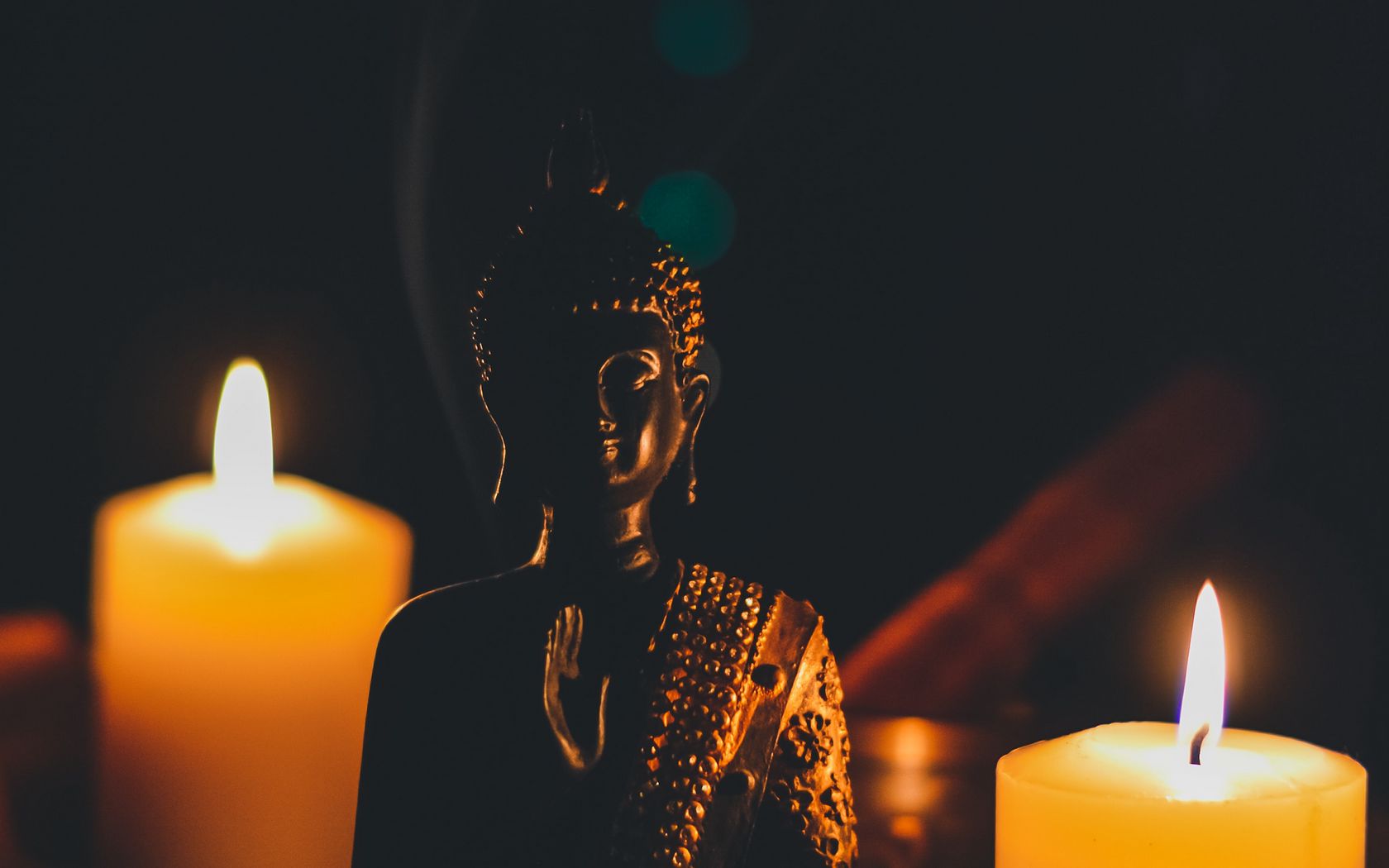 1680x1050 будда, статуэтка, свечи, буддизм, гармония обои 16:10