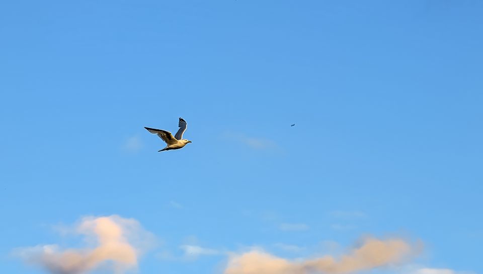 960x544 чайка, птица, полет, небо, облака, синий обои playstation ps vita
