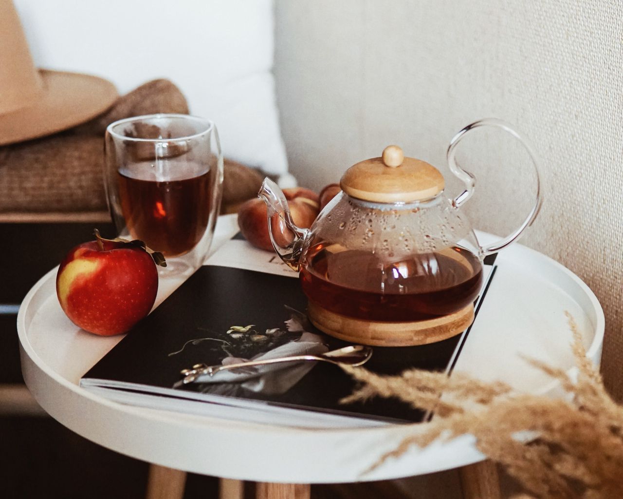 1280x1024 чайник, чай, яблоко, стакан, напиток обои стандарт 5:4