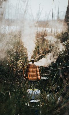 240x400 чайник, пар, трава, поход, природа обои nokia asha 311, samsung galaxy 580, omnia, lg kp500