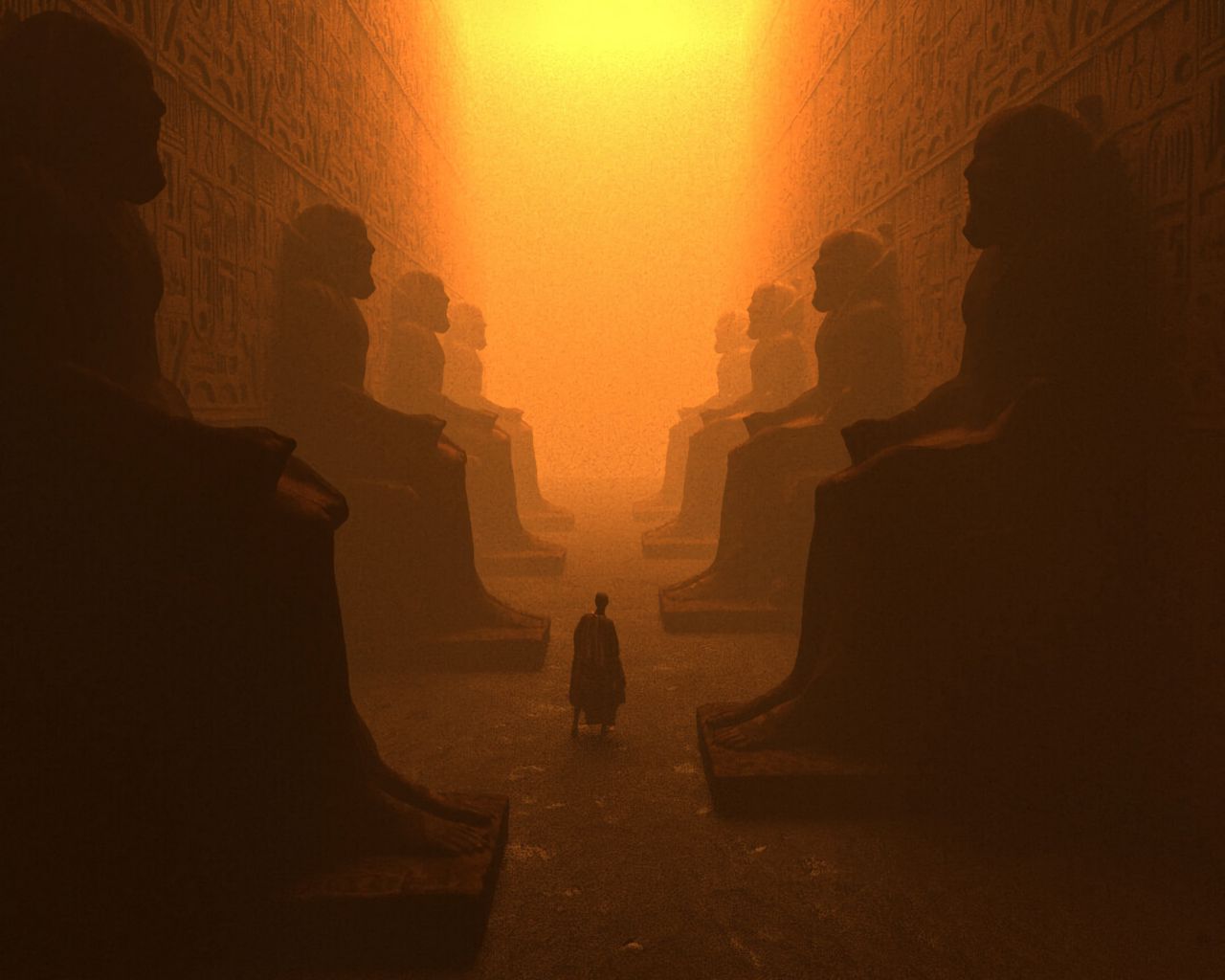 1280x1024 человек, силуэт, статуи, древний египет, арт обои стандарт 5:4