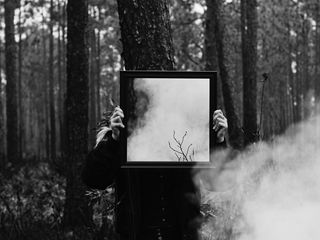 320x240 человек, зеркало, дым, чб, лес обои nokia e72, e71, asha, alcatel onetouch