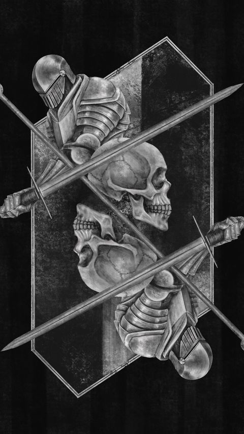480x854 череп, доспехи, меч, черно-белый, арт обои nokia lumia 630, sony ericsson xperia