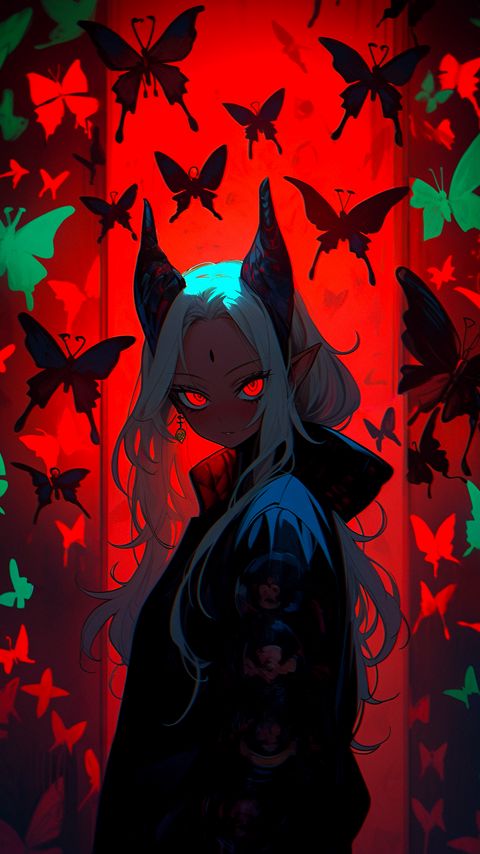 480x854 демон, девушка, рога, бабочки, аниме, арт обои nokia lumia 630, sony ericsson xperia