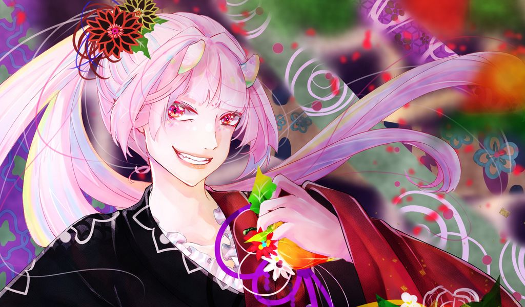 1024x600 демон, девушка, рога, кимоно, аниме, арт обои нетбук, планшет