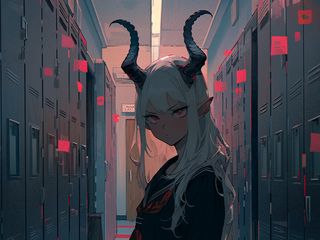 320x240 демон, рога, девушка, комната, аниме обои nokia e72, e71, asha, alcatel onetouch