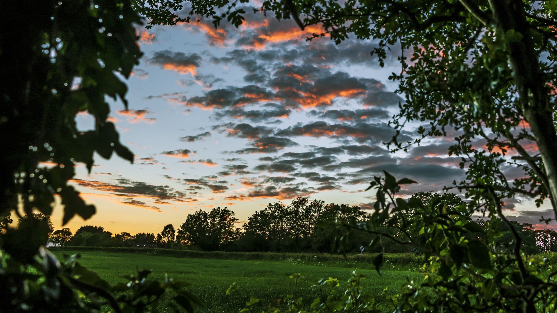 1920x1080 деревья, листья, поле, сумерки, пейзаж обои full hd, hdtv, fhd, 1080p