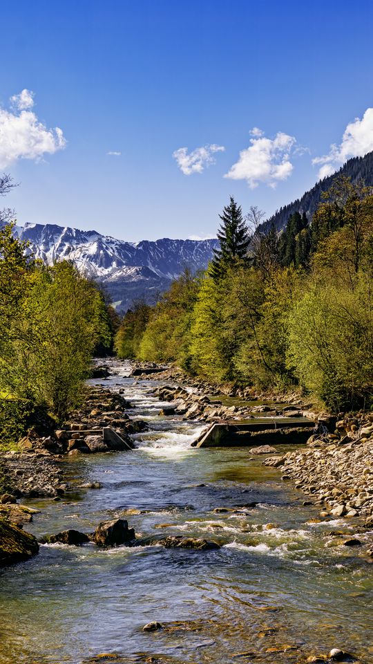 540x960 деревья, река, горы, камни, природа обои samsung galaxy s4 mini, microsoft lumia 535, philips xenium, lg l90, htc sensation