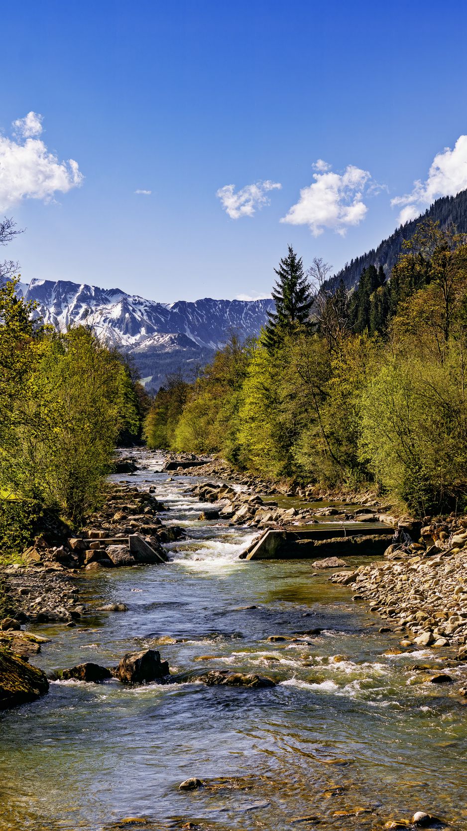 938x1668 деревья, река, горы, камни, природа обои iphone 8/7/6s/6 for parallax