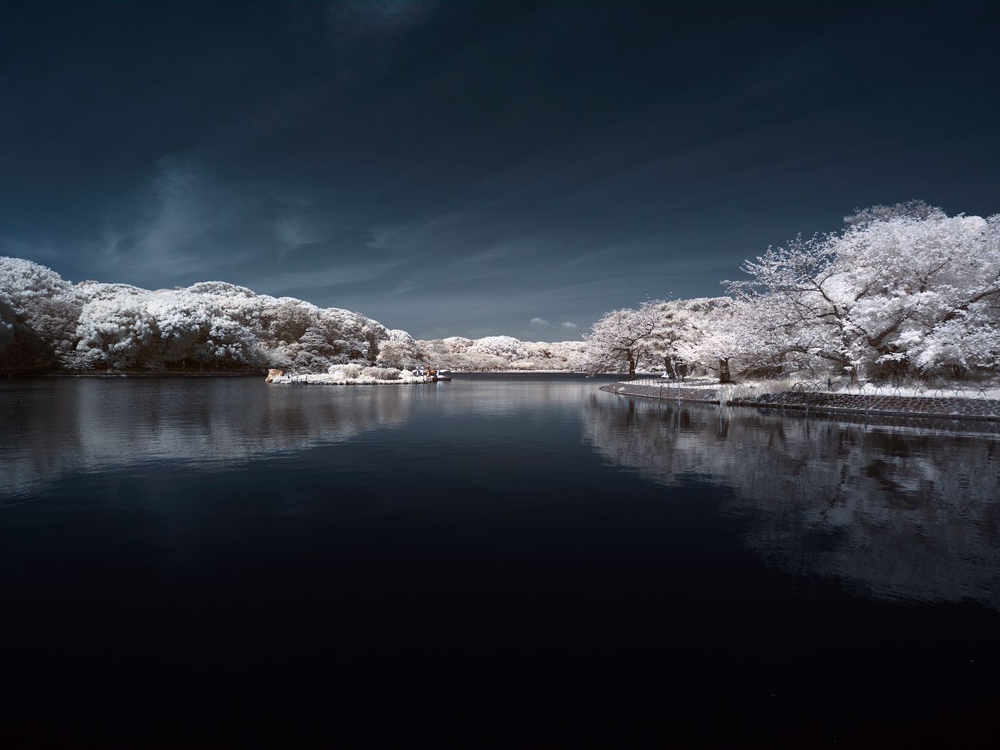 1400x1050 деревья в снегу, вода, небо, пейзаж, природа обои стандарт 4:3