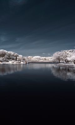 240x400 деревья в снегу, вода, небо, пейзаж, природа обои nokia asha 311, samsung galaxy 580, omnia, lg kp500