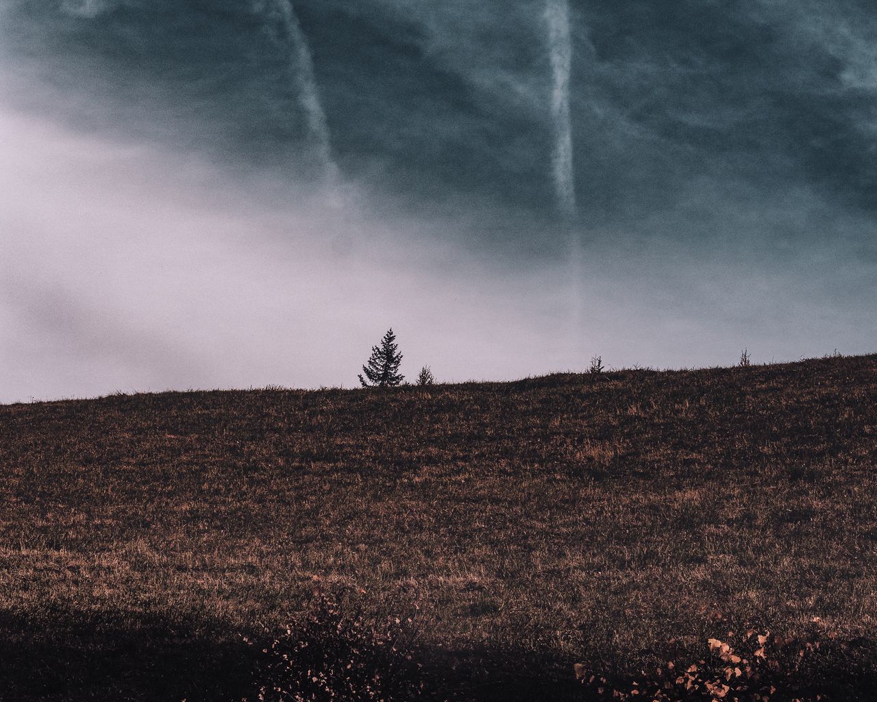 1280x1024 дерево, поле, горизонт, небо, трава, облака обои стандарт 5:4