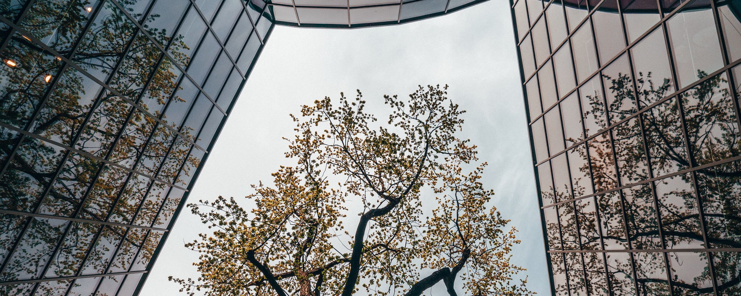 2560x1024 дерево, здание, отражение, архитектура, стекло обои ультраширокий монитор