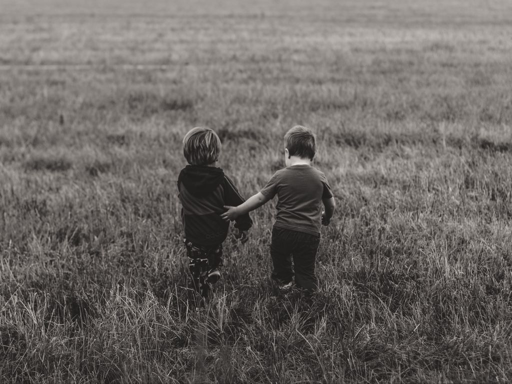 1024x768 дети, пара, поле, прогулка, дружба, чб обои стандарт 4:3
