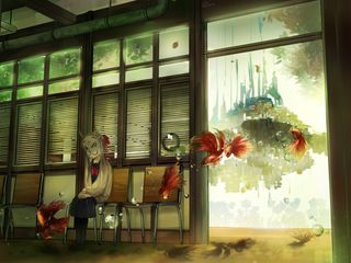 320x240 девочка, маска, стулья, аниме, арт обои nokia e72, e71, asha, alcatel onetouch