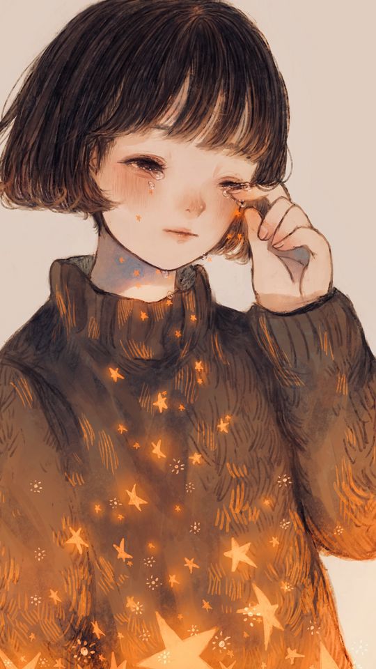 540x960 девочка, слезы, грусть, звезды, аниме, арт обои samsung galaxy s4 mini, microsoft lumia 535, philips xenium, lg l90, htc sensation