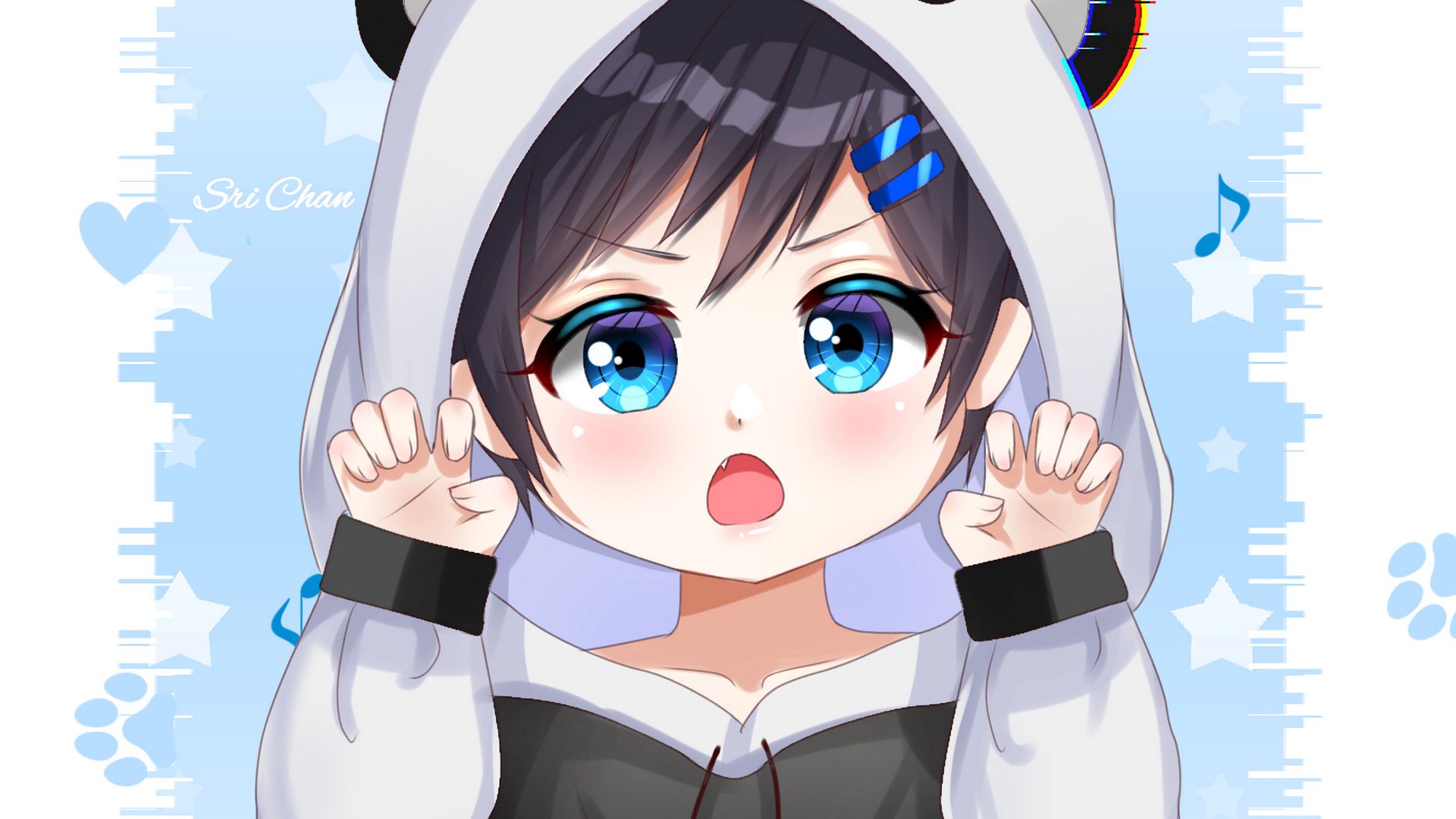 1920x1080 девочка, жест, панда, милый, аниме, арт обои full hd, hdtv, fhd, 1080p