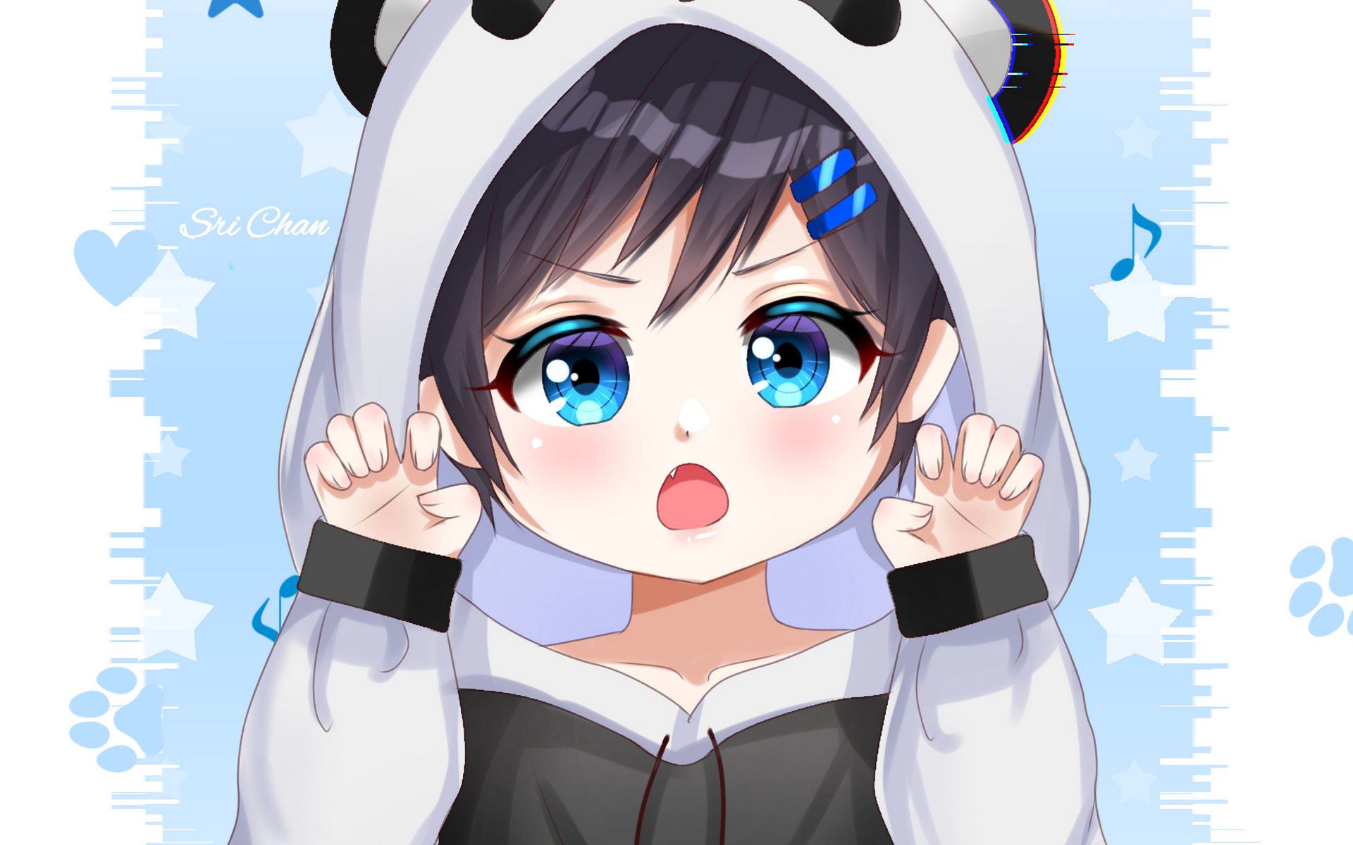 1920x1200 девочка, жест, панда, милый, аниме, арт обои 16:10