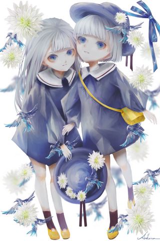 320x480 девочки, сестры, цветы, шляпы, аниме обои samsung galaxy ace gt-s5830, sony xperia e, miro, htc wildfire s, c, lg optimus