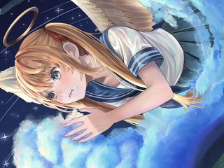 320x240 девушка, ангел, облака, небо, аниме, арт обои nokia e72, e71, asha, alcatel onetouch