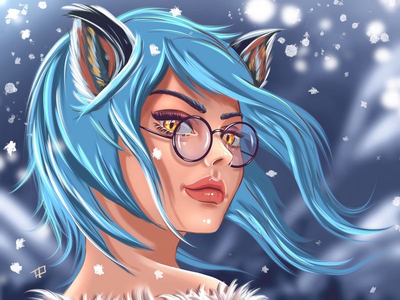 800x600 девушка, арт, лицо, очки, взгляд, волосы, синий обои pocket pc, pda, кпк