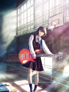 240x320 девушка, бас гитара, гитара, улыбка, аниме обои мобильный телефон, смартфон