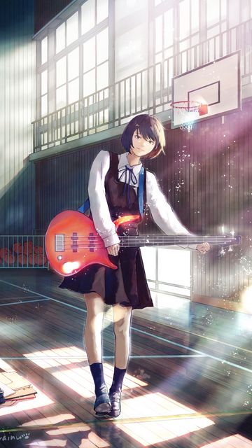 360x640 девушка, бас гитара, гитара, улыбка, аниме обои nokia n8, c5, c6, c7, e7, x6 nokia 5800, 5230, 5228, sony ericsson vivaz