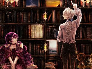 320x240 девушка, библиотека, книги, аниме, арт, винтаж обои nokia e72, e71, asha, alcatel onetouch