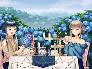 320x240 девушка, чаепитие, чашка, сад, аниме обои nokia e72, e71, asha, alcatel onetouch