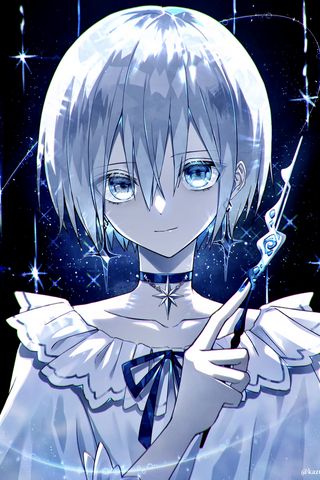 320x480 девушка, чокер, платье, взгляд, синий, аниме обои samsung galaxy ace gt-s5830, sony xperia e, miro, htc wildfire s, c, lg optimus
