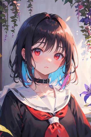 320x480 девушка, чокер, цветы, аниме обои samsung galaxy ace gt-s5830, sony xperia e, miro, htc wildfire s, c, lg optimus